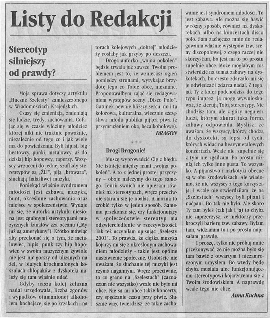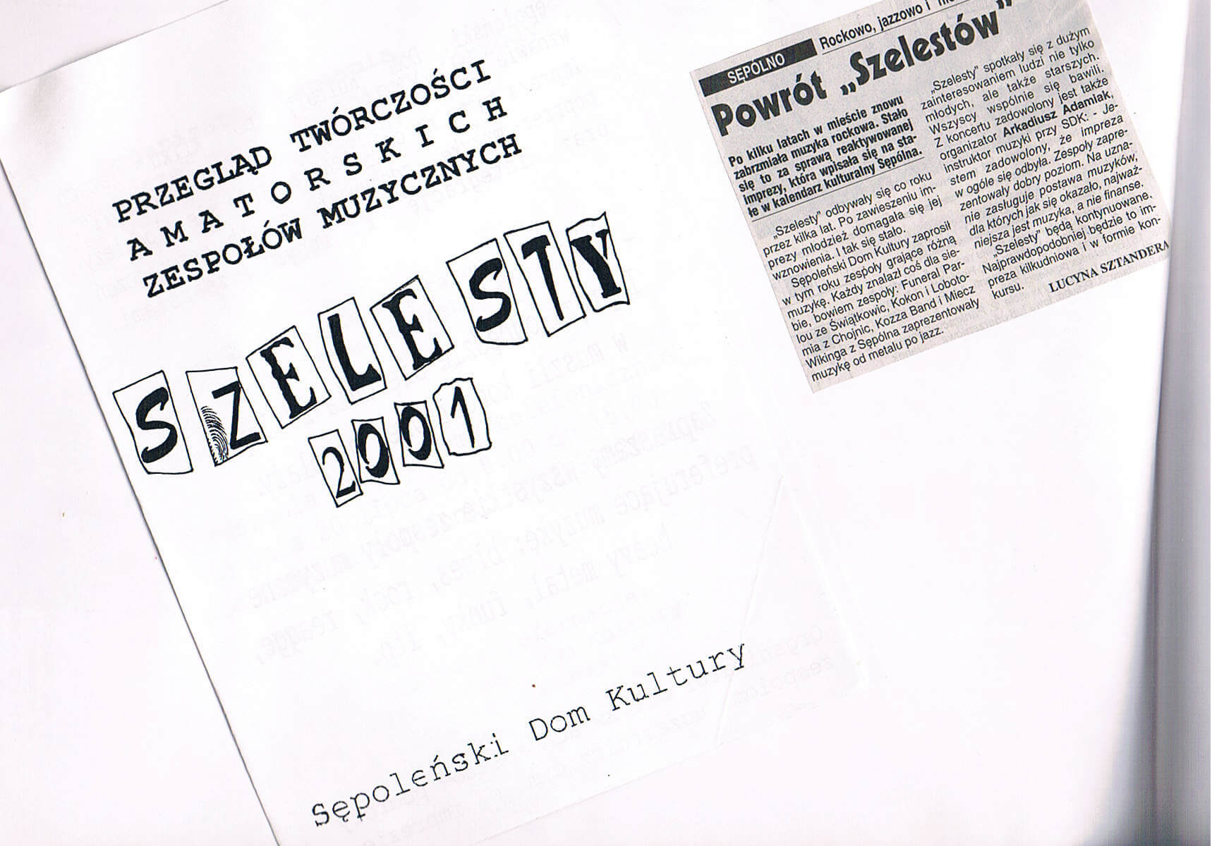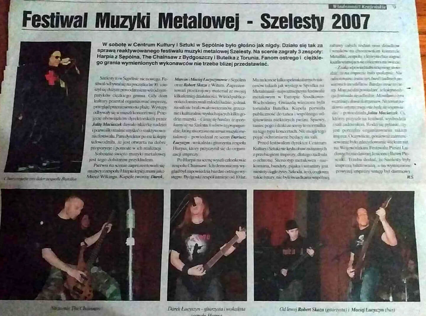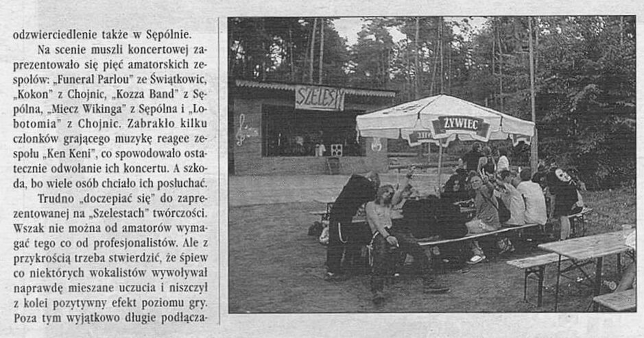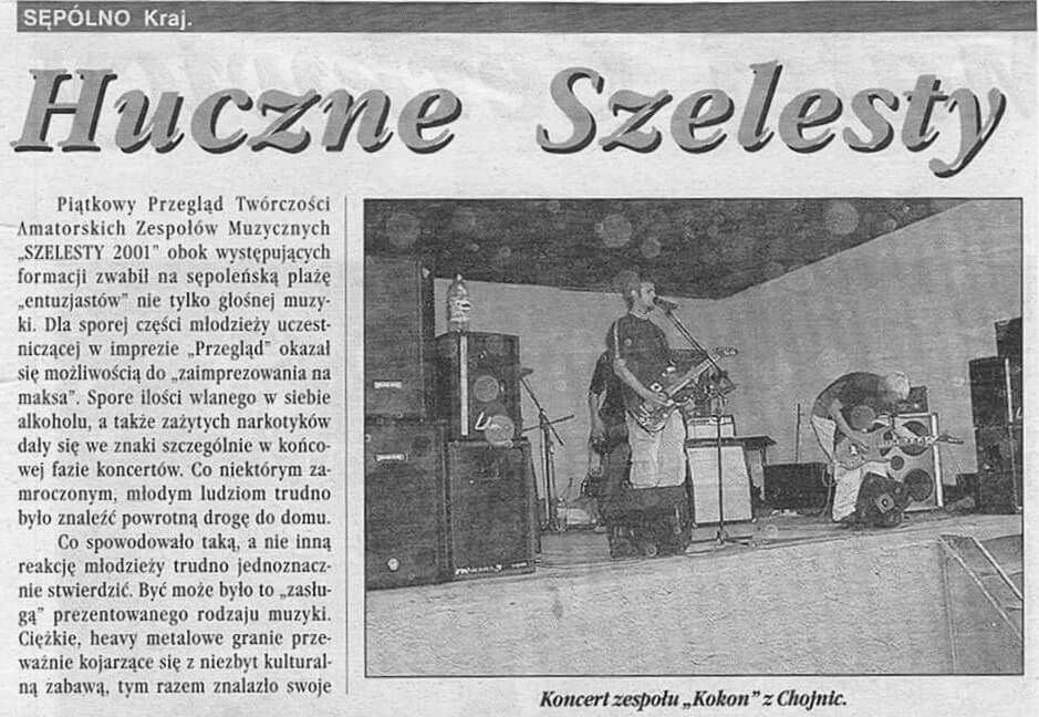 Zanim jednak „Szelesty” zyskały obecną formułę, organizatorzy podejmowali dwukrotnie próby reaktywacji imprezy. Druga edycja wydarzenia odbyła się dopiero w roku 2001, a areną muzycznych prezentacji była muszla koncertowa, znajdująca się przy sępoleńskiej plaży miejskiej. W ramach „Przeglądu Twórczości Amatorskich Zespołów Muzycznych” do Sępólna przybyły Kokon (Chojnice), Lobotomia (Chojnice) oraz Funeral Parlou (Świątkowice), a lokalsów reprezentowali Kozza Band oraz bodaj najpopularniejszy zespół z sępoleńskim rodowodem, Miecz Wikinga. Mimo iż „Szelesty” od początku były inicjatywą otwartą na różne gatunki muzyczne repertuar kolejnych dwóch edycji – jakie odbyły się ponownie po długiej, 6-letniej przerwie – zdominowały występy grup metalowych. Impreza była zresztą wówczas reklamowana jako „Metal Festiwal”. Rok 2007 to powrót do Sępoleńskiego Domu Kultury – wtedy funkcjonującego już jako Centrum Kultury i Sztuki – i koncerty Chainsaw (Bydgoszcz), Butelki (Chojnice) oraz Harpii (Sępólno), zespołu który powstał na gruzach Miecza Wikinga. Rok później w tym samym miejscu i pod tym samym szyldem wystąpili Wyrock (Bydgoszcz), Vis Maior (Kamień Krajeński) oraz ponownie Chainsaw i Harpia. Łącznie 4 edycje w ciągu 17 lat. „Szelesty” długo dojrzewały, potrzeba było czasu by idea zapoczątkowana w latach 90. mogła – już w zupełnie innych warunkach – zyskać obecny, jak wierzymy, profesjonalny charakter. Zapraszamy na krótką podróż w czasie, odsyłając do fotorelacji z archiwalnych edycji „Szelestów”.